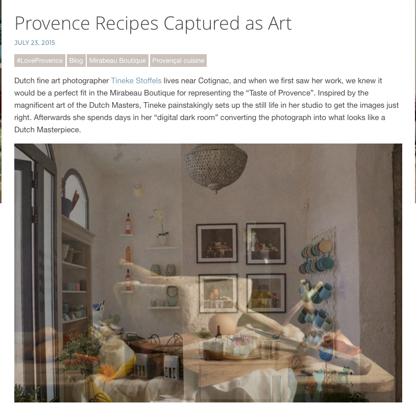 Dutch fine art photographer Tineke Stoffels lives near Cotignac, and when we first saw her work, we knew it would be a perfect fit in the Mirabeau Boutique for representing the “Taste of Provence”.
